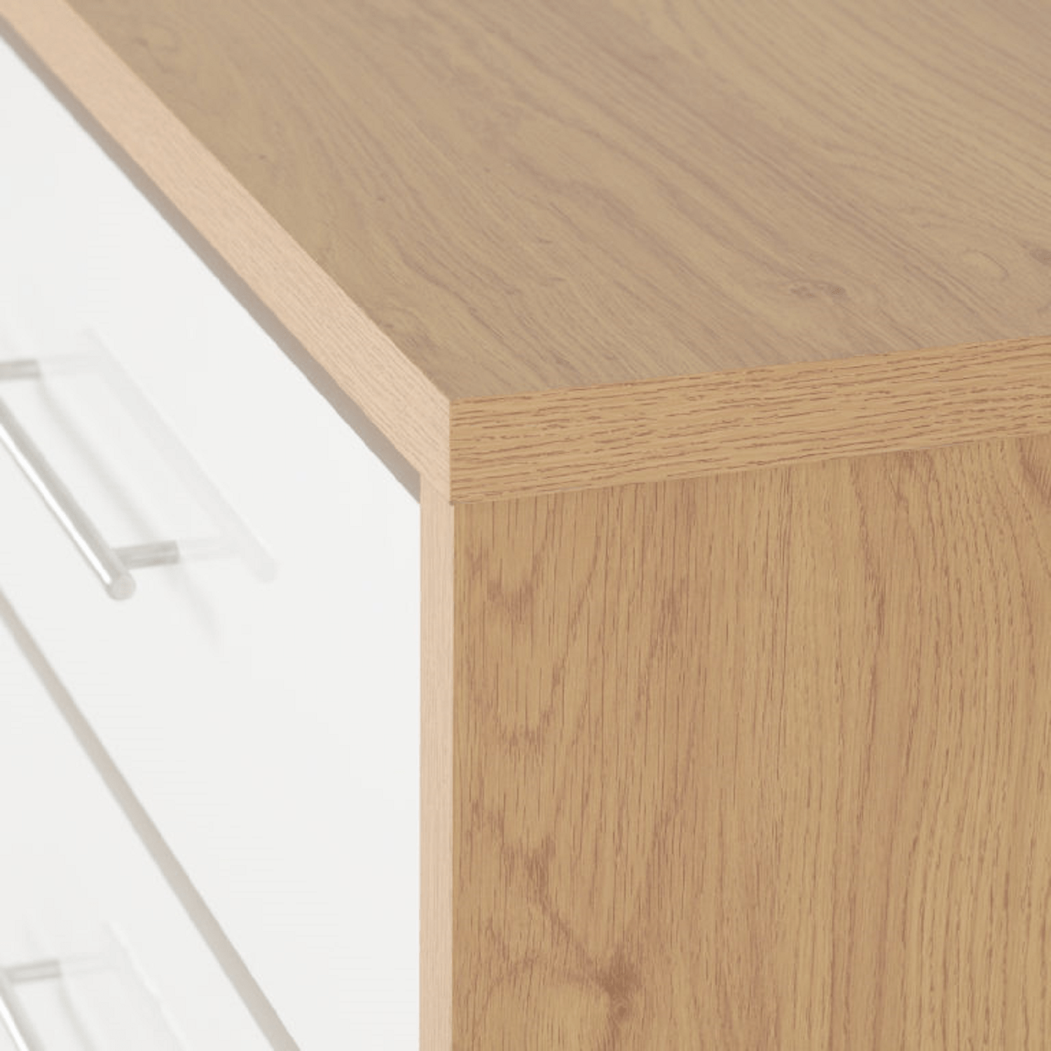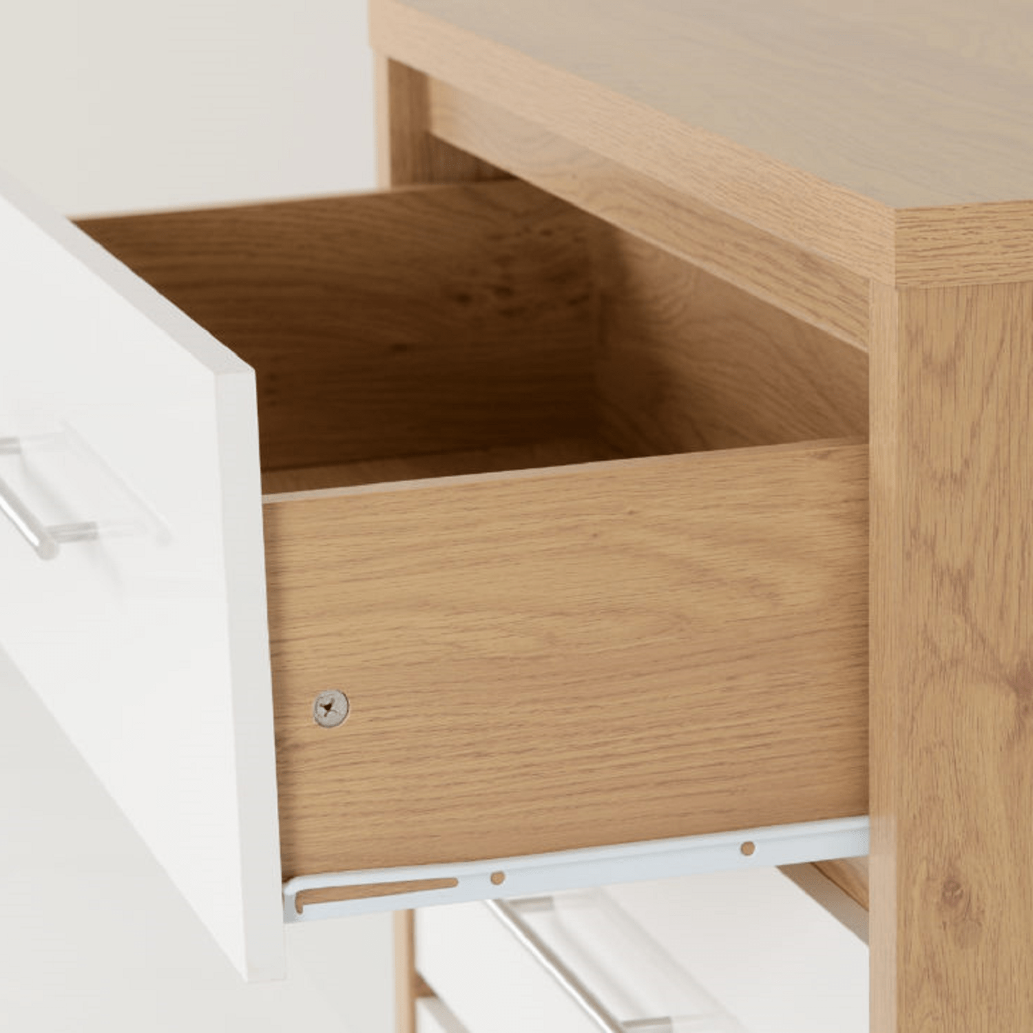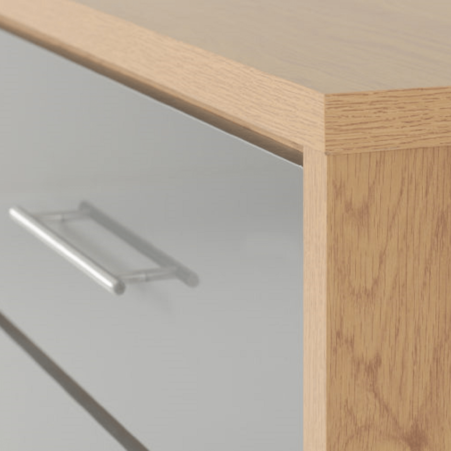 Add a sleek, two tone touch to your bedroom with the Santorini 3 Drawer Chest, available in a stylish light oak effect finish paired with a choice of high gloss white or grey drawer fronts. Designed to complement contemporary interiors, this compact and functional piece offers a balance of form and function, making it an ideal addition to any bedroom setup.