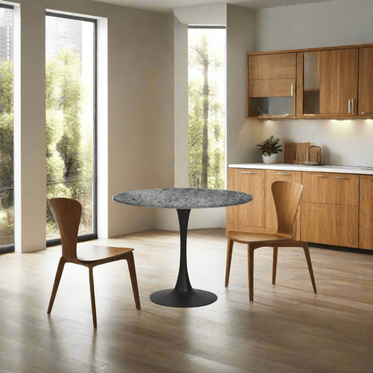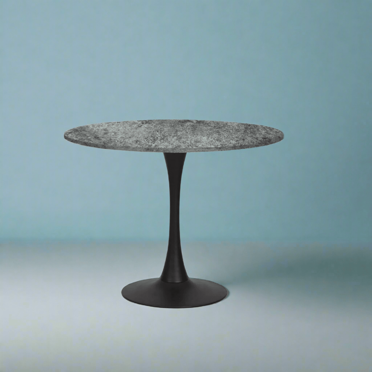 Supported by a bold black metal pedestal base, the Miami table combines style and stability in a space-saving design that comfortably seats 4 people. The sleek contrast between the concrete-effect top and matte black base makes this table a striking addition to any modern dining space.