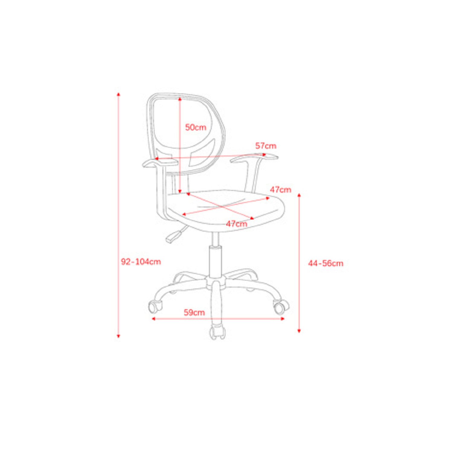 • Assembled size: Width 58cm x Depth 57cm x Height (Seat to floor) 91-101cm