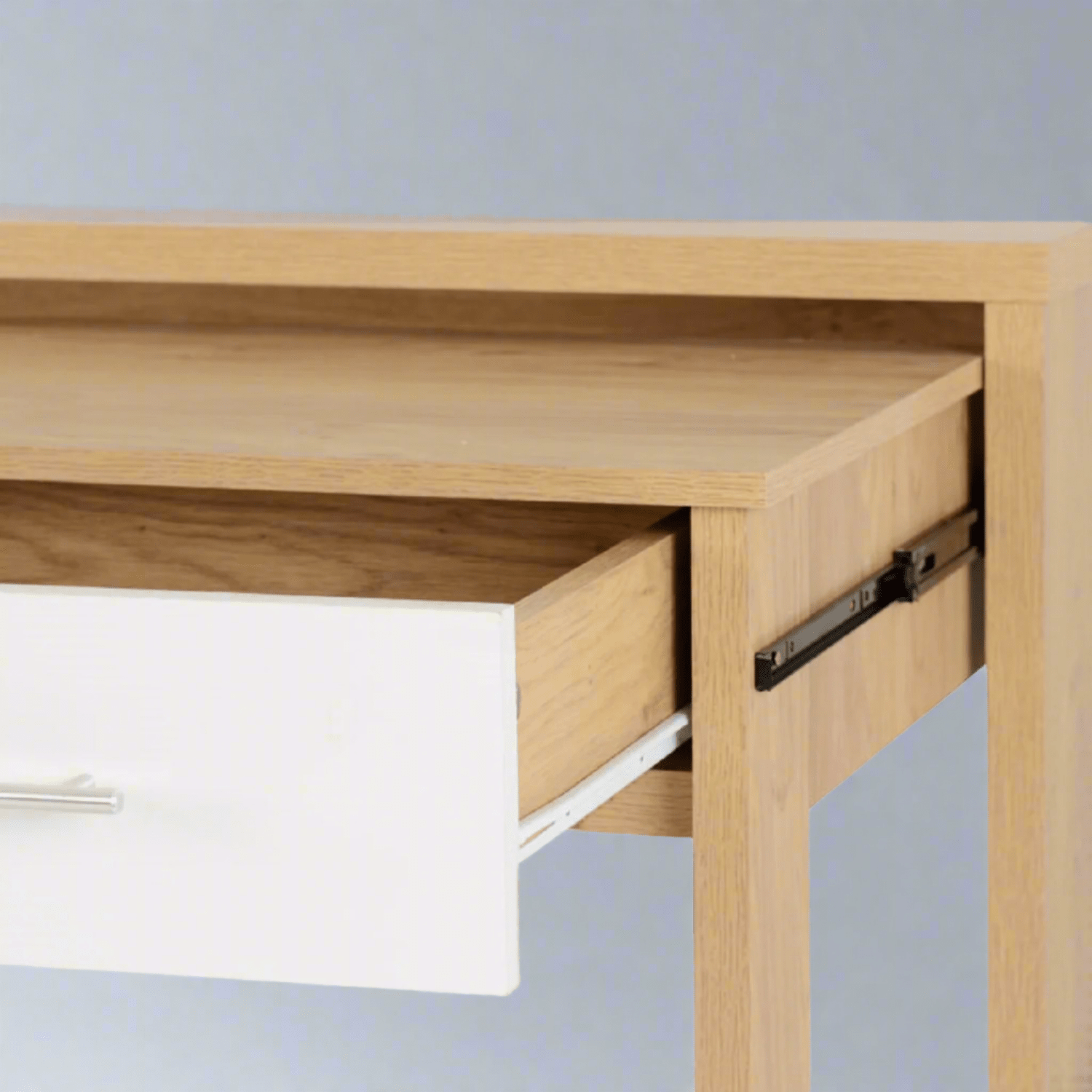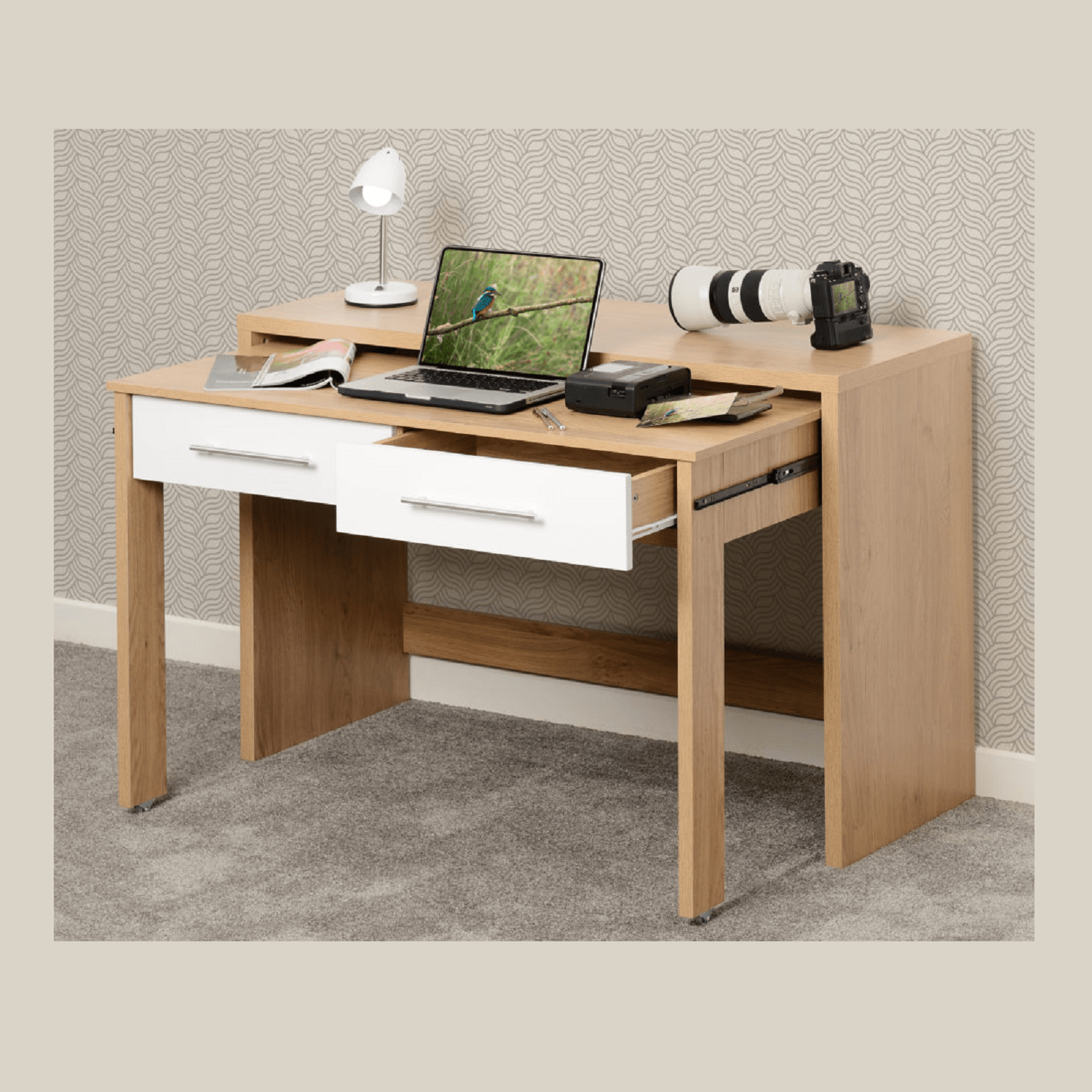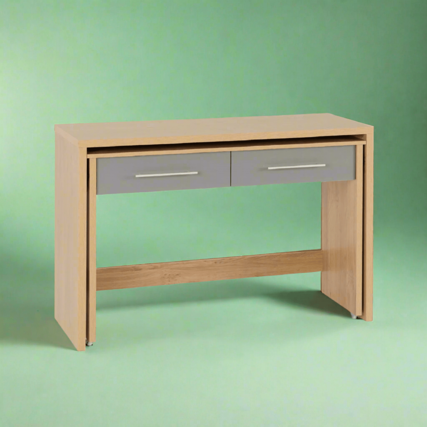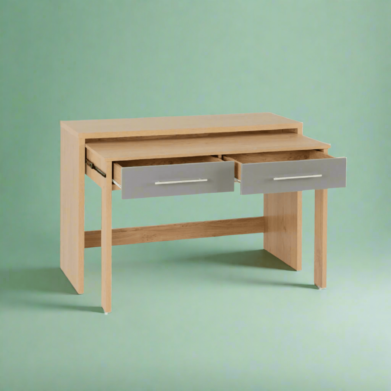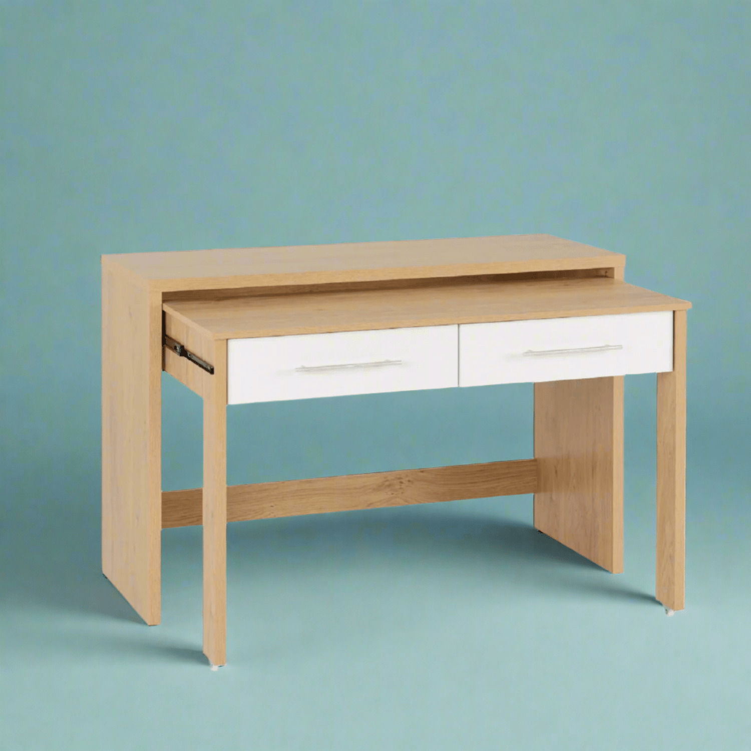 The Santorini 2 Drawer Slider Desk is a smart space-saving solution for modern home offices, student bedrooms, or compact workspaces. Functionality and style combined, this desk features a sleek, contemporary finish that fits into a variety of interiors. Its standout feature is the innovative slider desk, which tucks neatly into the main desk frame, providing an extra surface to work on when needed without taking up additional floor space.
