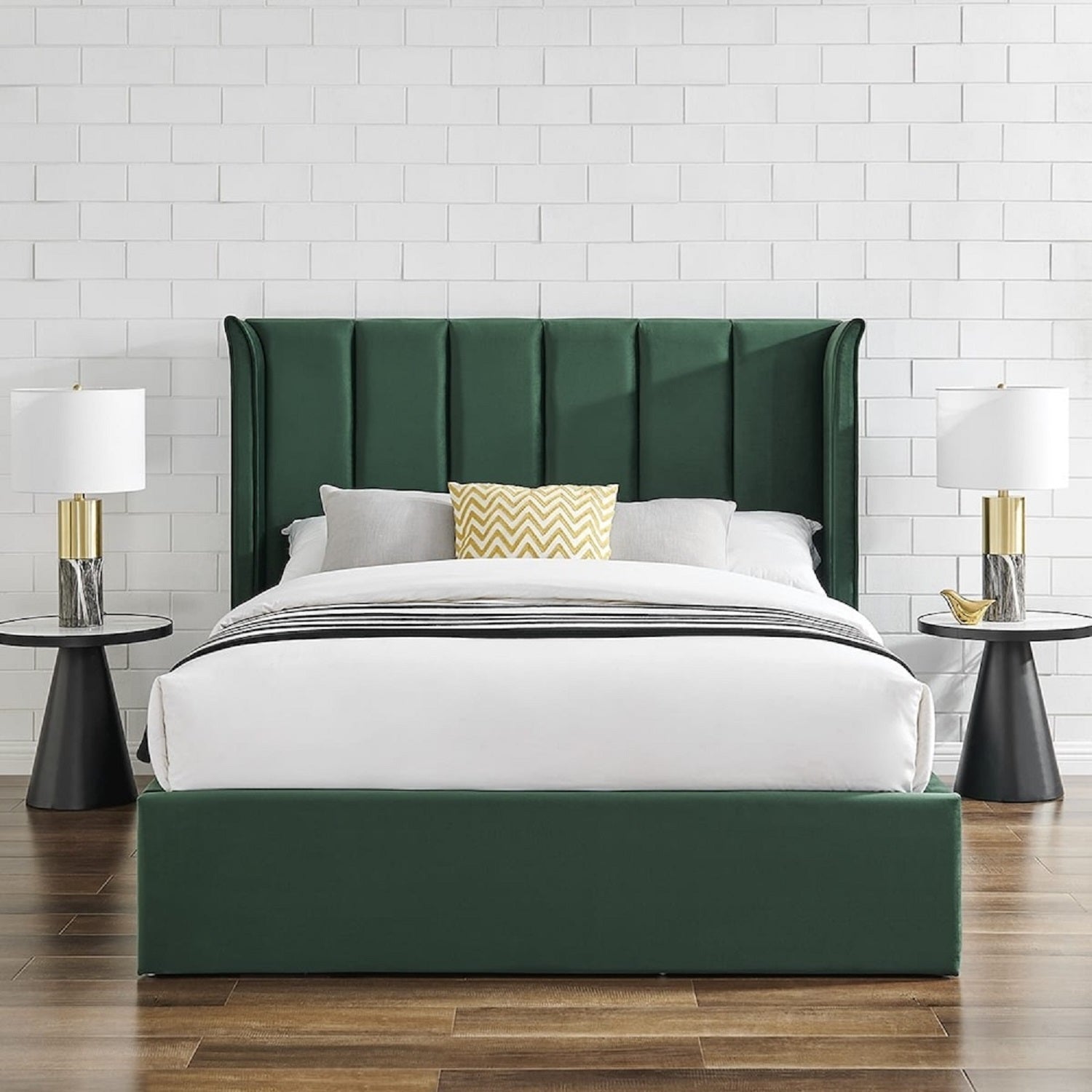 Allegra Velvet Curved Winged Headboard Ottoman Bed