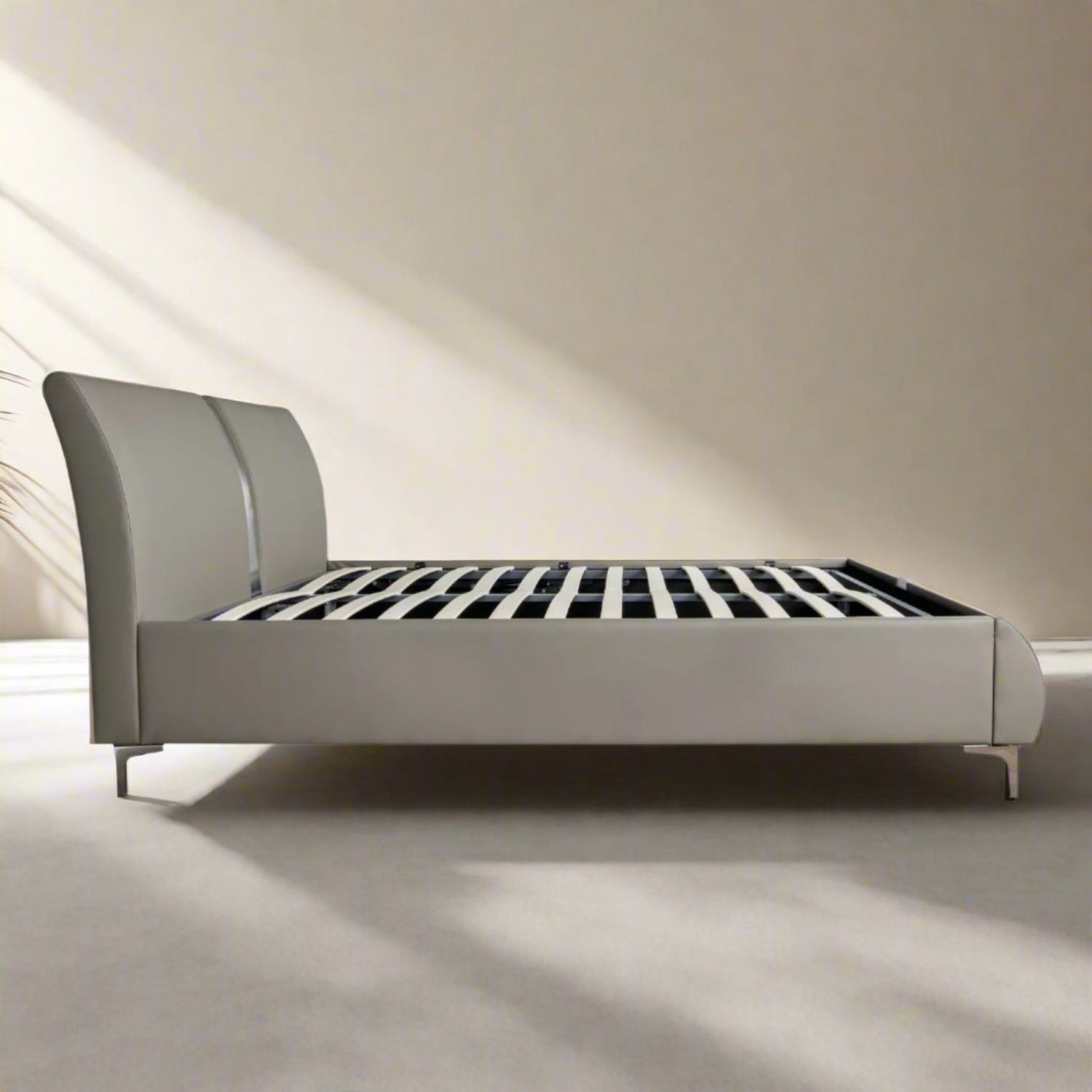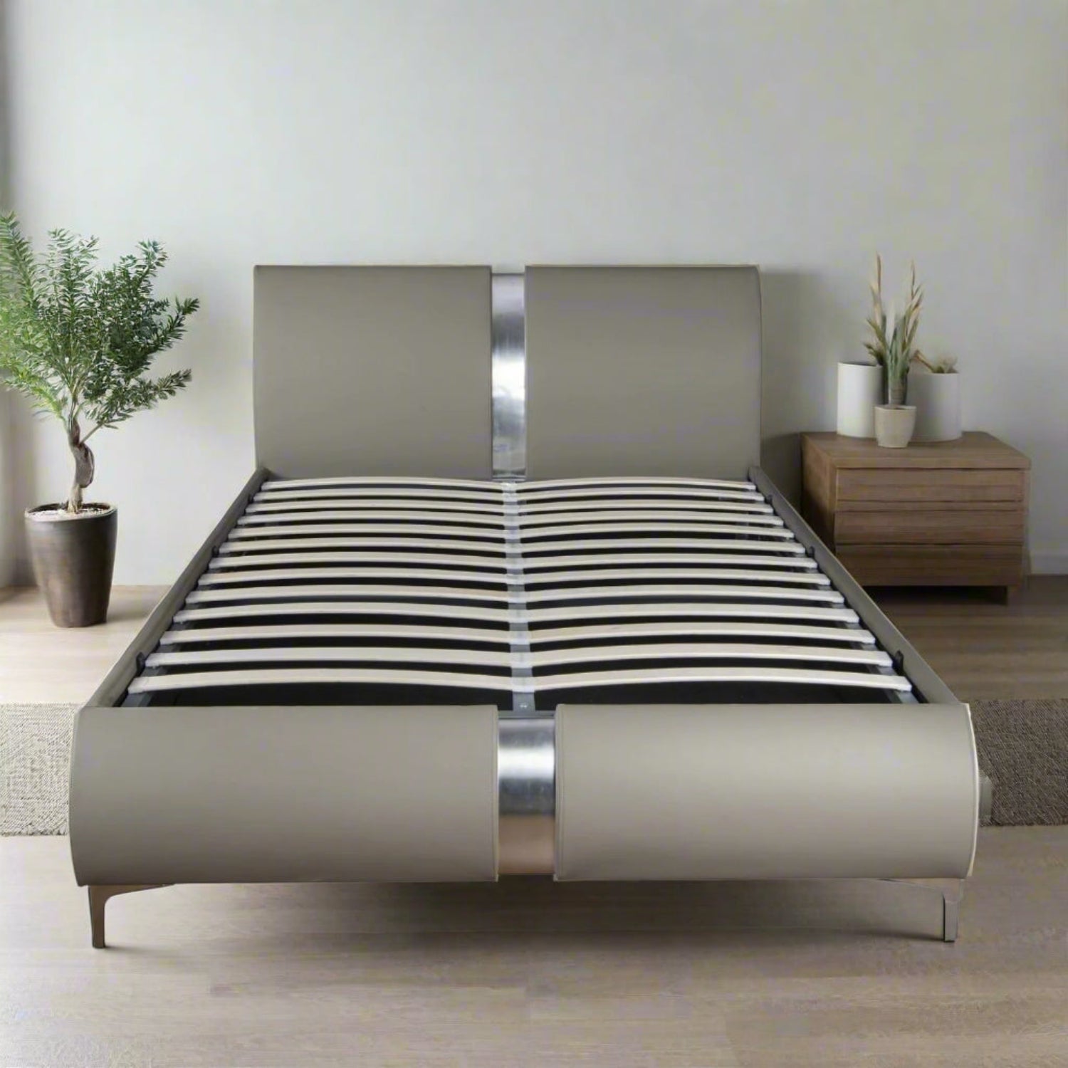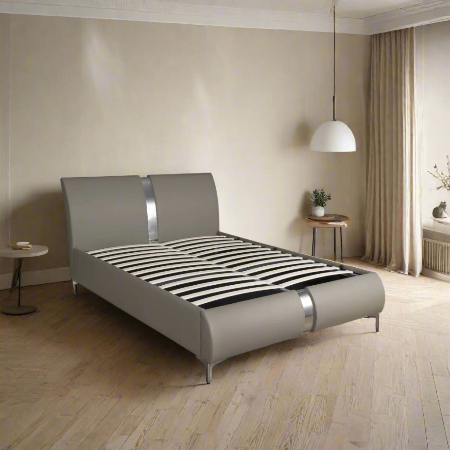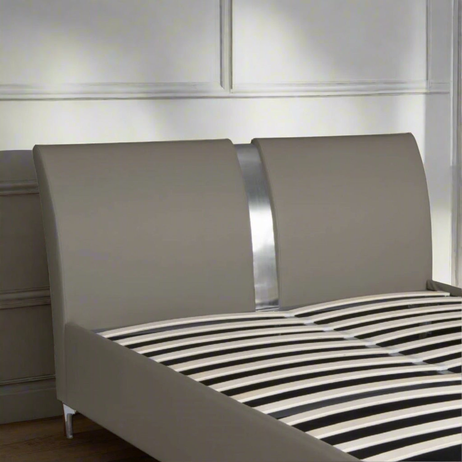The Ariana PU Taupe Ottoman Bed combines luxury, practicality, and contemporary style in one stunning package. Upholstered in soft taupe PU leather, the bed has a unique look, enhanced by an inlaid brushed steel highlight that gives it a sleek, futuristic edge.