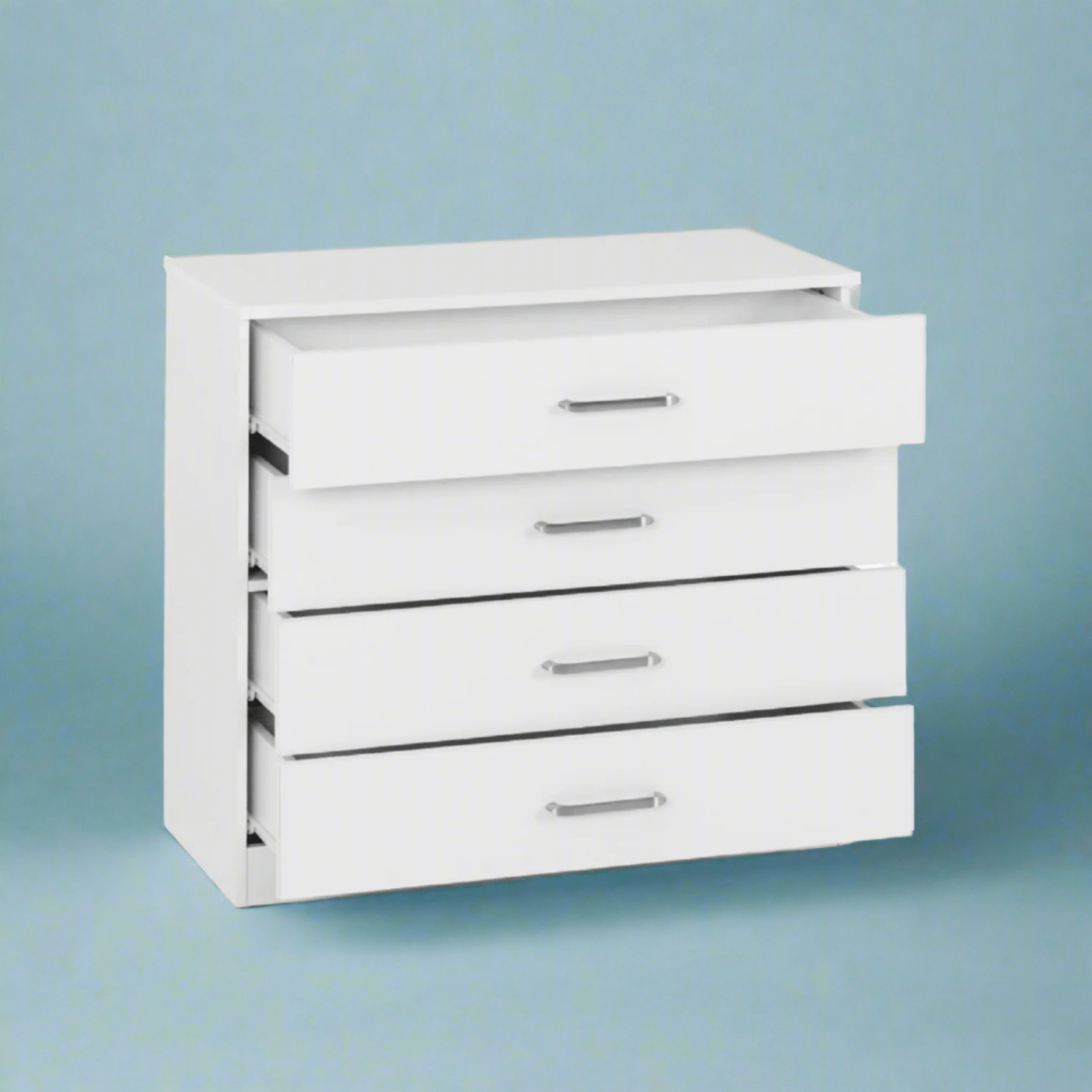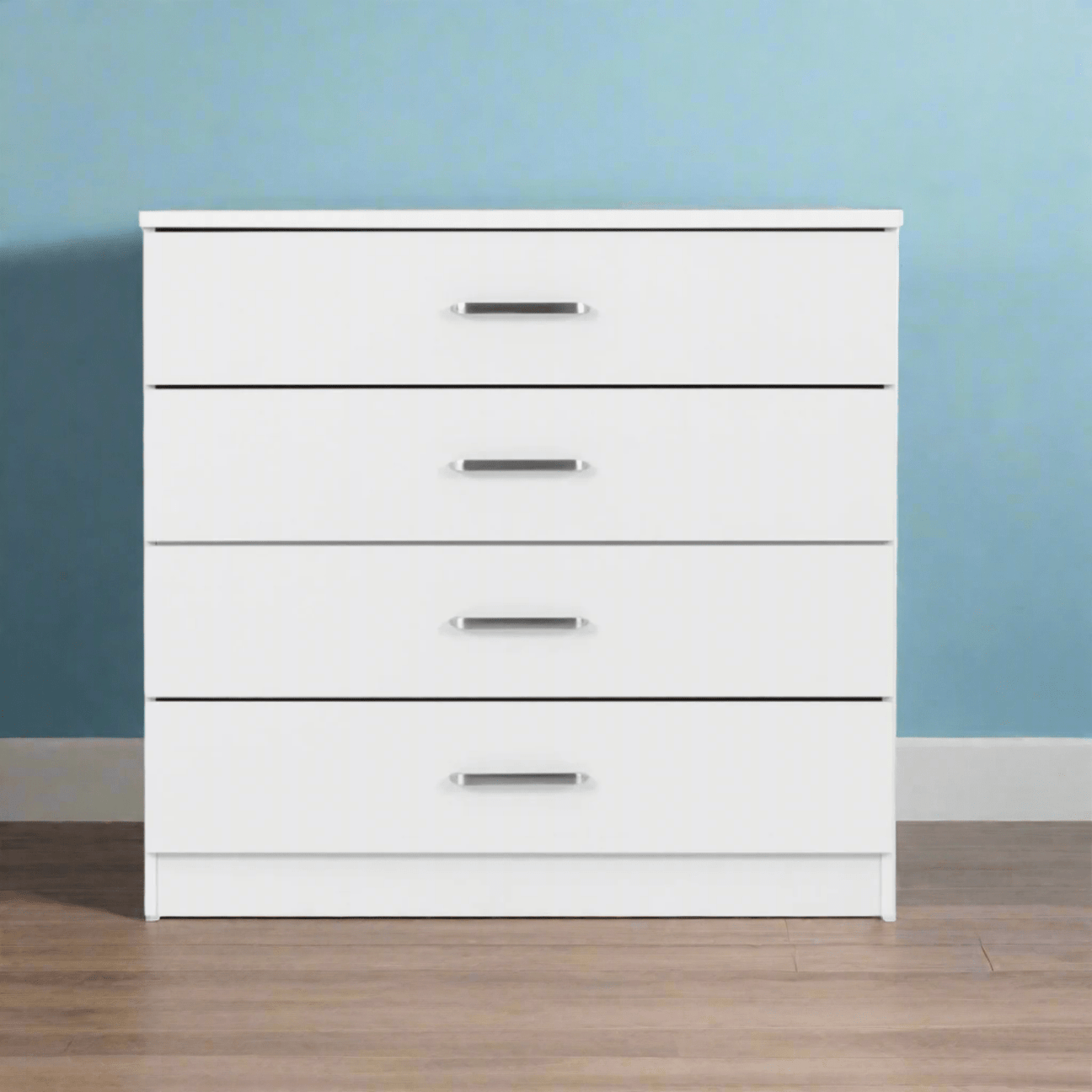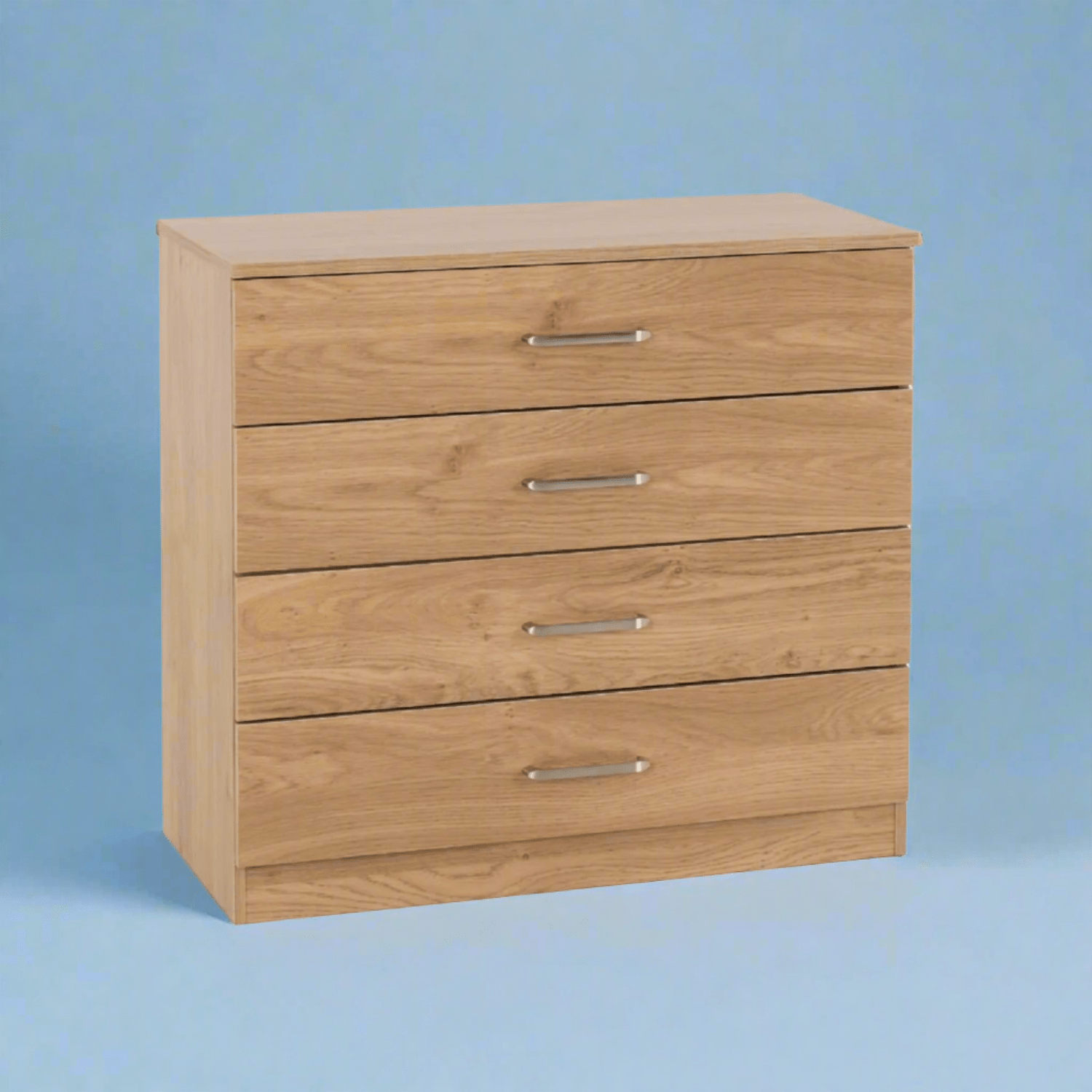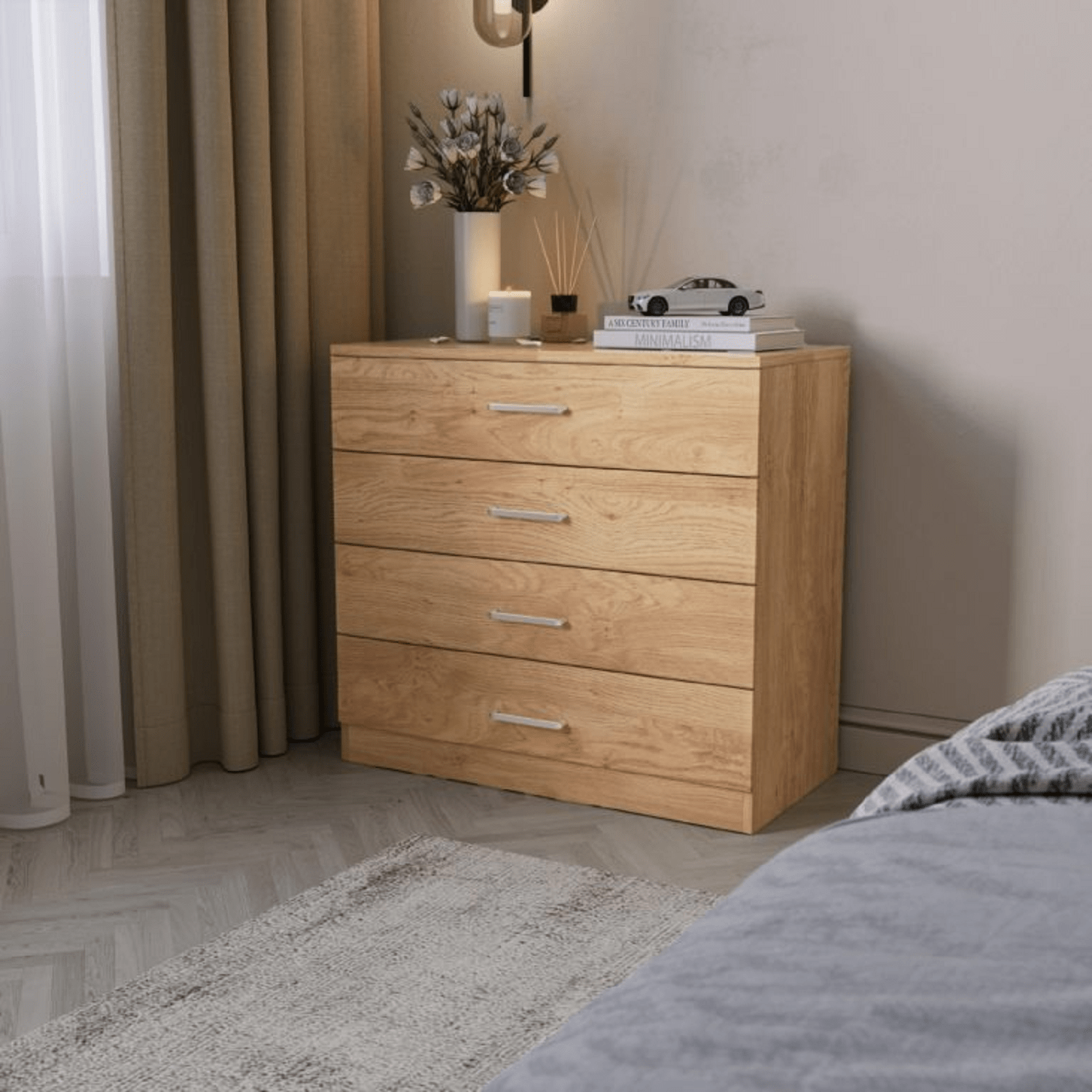 The Dornoch 4 Drawer Chest, a great blend of contemporary design and every day functionality that will suit any bedroom decor. Constructed from composite board, finished in a sleek paper veneer that makes it easy to wipe clean and resistant to everyday wear and tear. Built with a MDF back panel and a 4 drawer construction. The drawers glide smoothly on metal runners, providing easy access to your essentials, with plastic handles for accessibility. Sturdy plastic feet offer reliable support and protect your floors from scratches.
