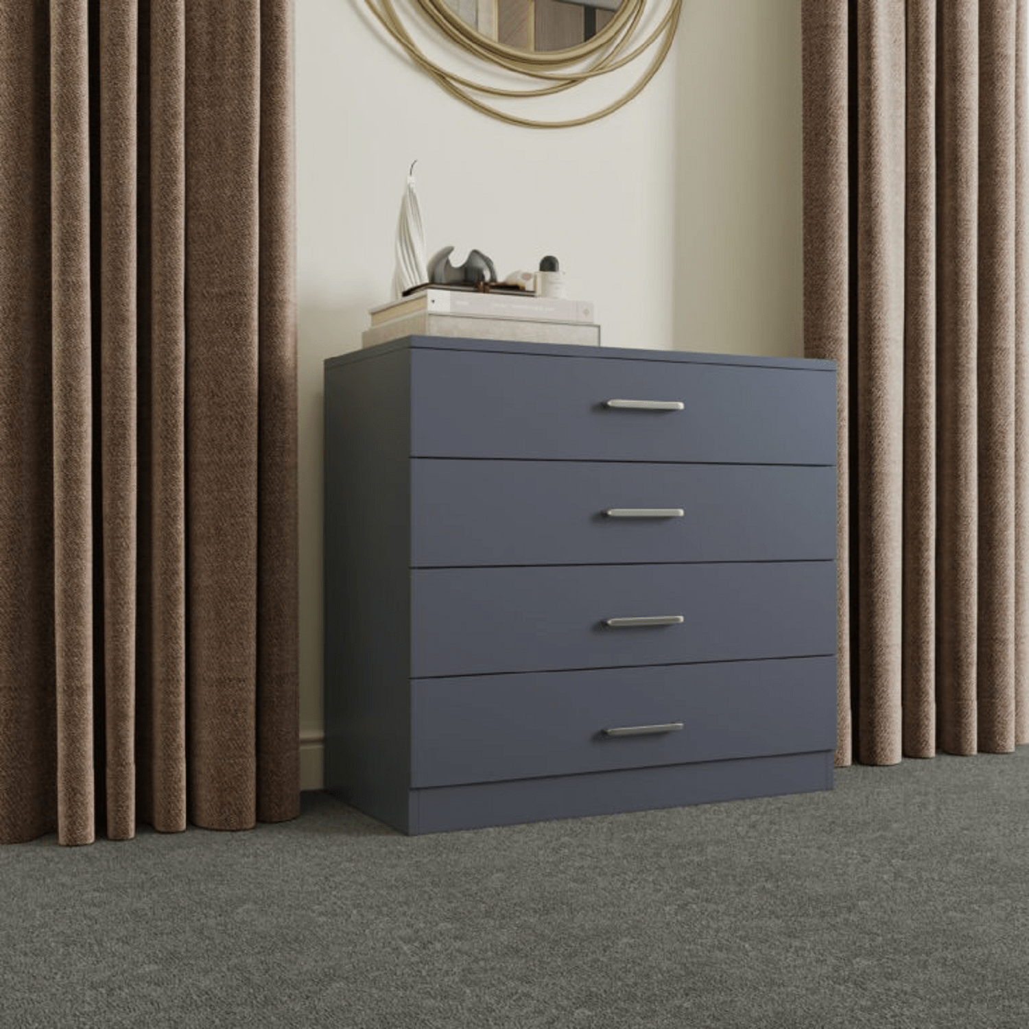 Part of the Dornoch furniture range this chest of drawers can easily be paired with matching items for that coordinated bedroom look. The Dornoch 4 Drawer Chest is a great value choice bringing a compact design fitting seamlessly into any space, making it a versatile addition with a modern touch.