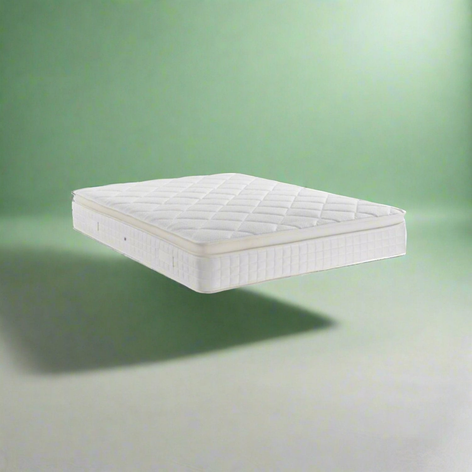 The Dreamland Comfort Deluxe Charisma 1000 Mattress contains 1000 individual pocket springs with a deep visco memory foam filled pillow top wrapped in a breathable border, offering a cloud-like sensation while you sleep. The top layer of memory foam is designed to cradle your body and relieve pressure points, allowing for a more relaxing and rejuvenating rest.