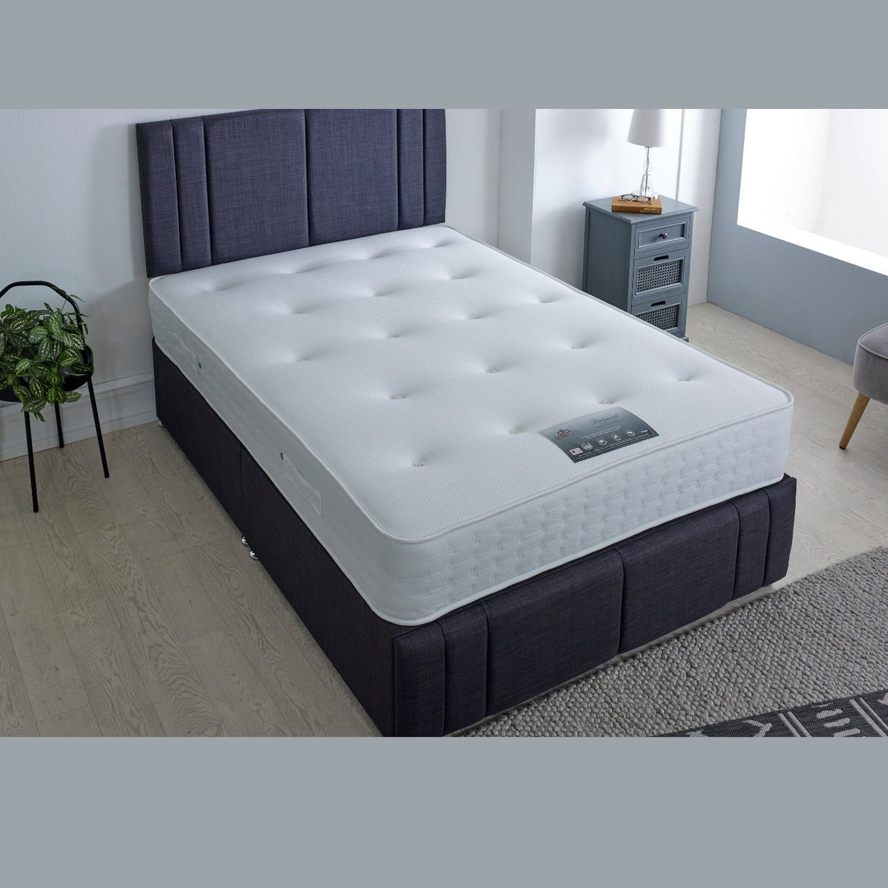Richmond 1000 Pocket Mattress Divan Set and Stockholm Headboard - Linen Style Fabric Anthracite